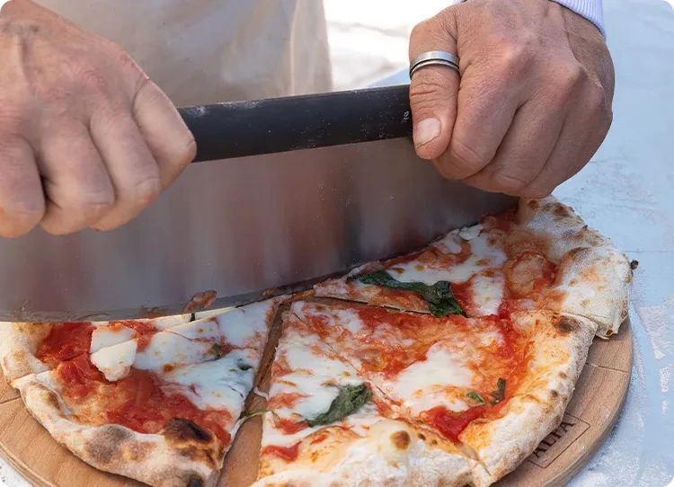 Ultraskarpt blad i rostfritt stål: Våra pizzaskärblad är tillverkade av högkvalitativt rostfritt stål, vilket ger en skarp och hållbar egg som enkelt glider igenom alla typer av pizzor, från tunna bottnar till djupgående läckerheter.